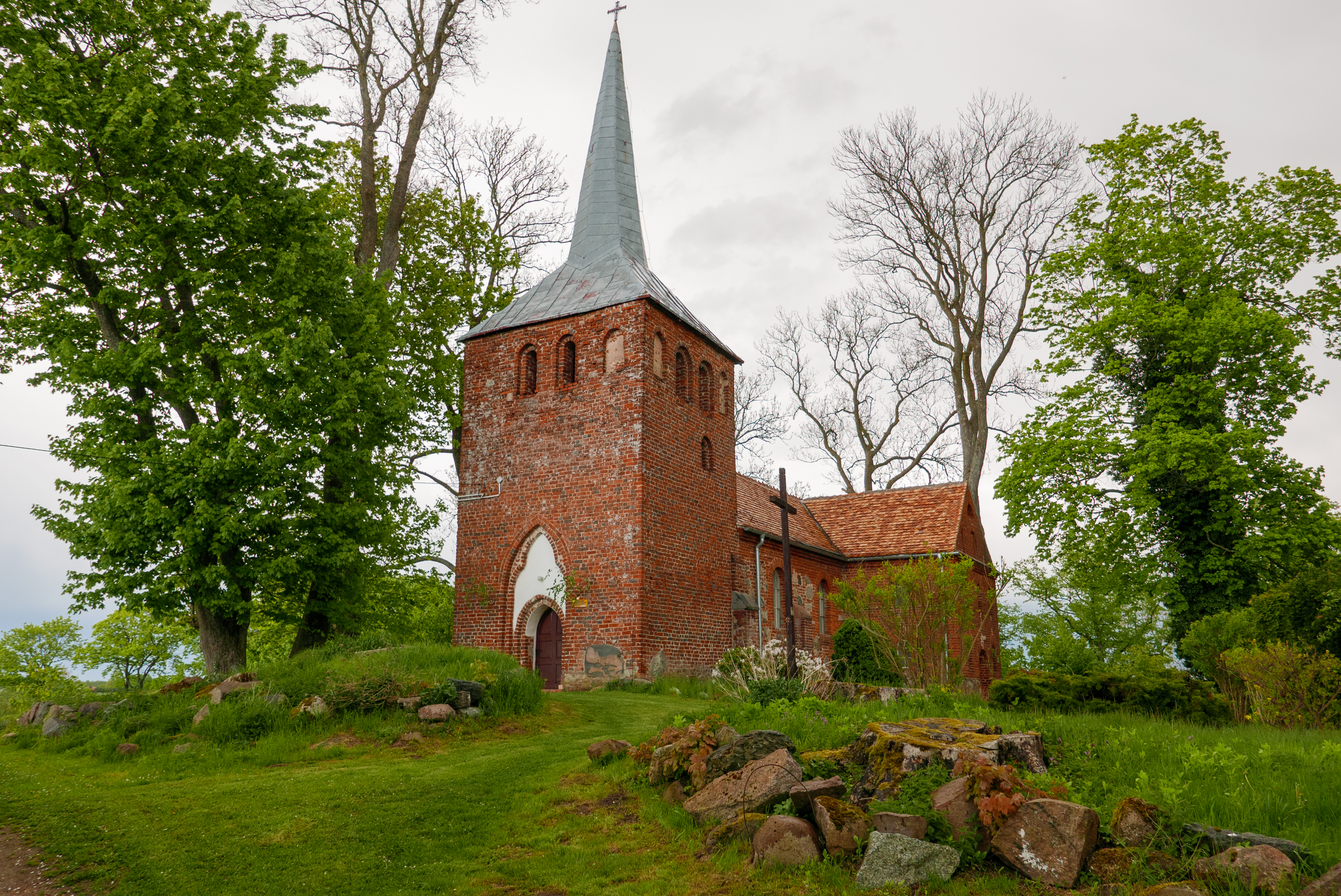 Świątynia jest gotyckim kościołem zbudowanym na przełomie XV i XVI wieku, przebudowanym w wieku XIX. Kościół usytuowany jest na malowniczym wzniesieniu. Bezpośrednio po wojnie budynek użytkowany był jako magazyn zboża. Jako kościół katolicki służy społeczności ponownie od roku 1974. W świątyni można zobaczyć zabytkowe pochodzące z 1897 r. witraże wykonane w “Konigl - Instytut Fur Glass Malerei Berlin”.