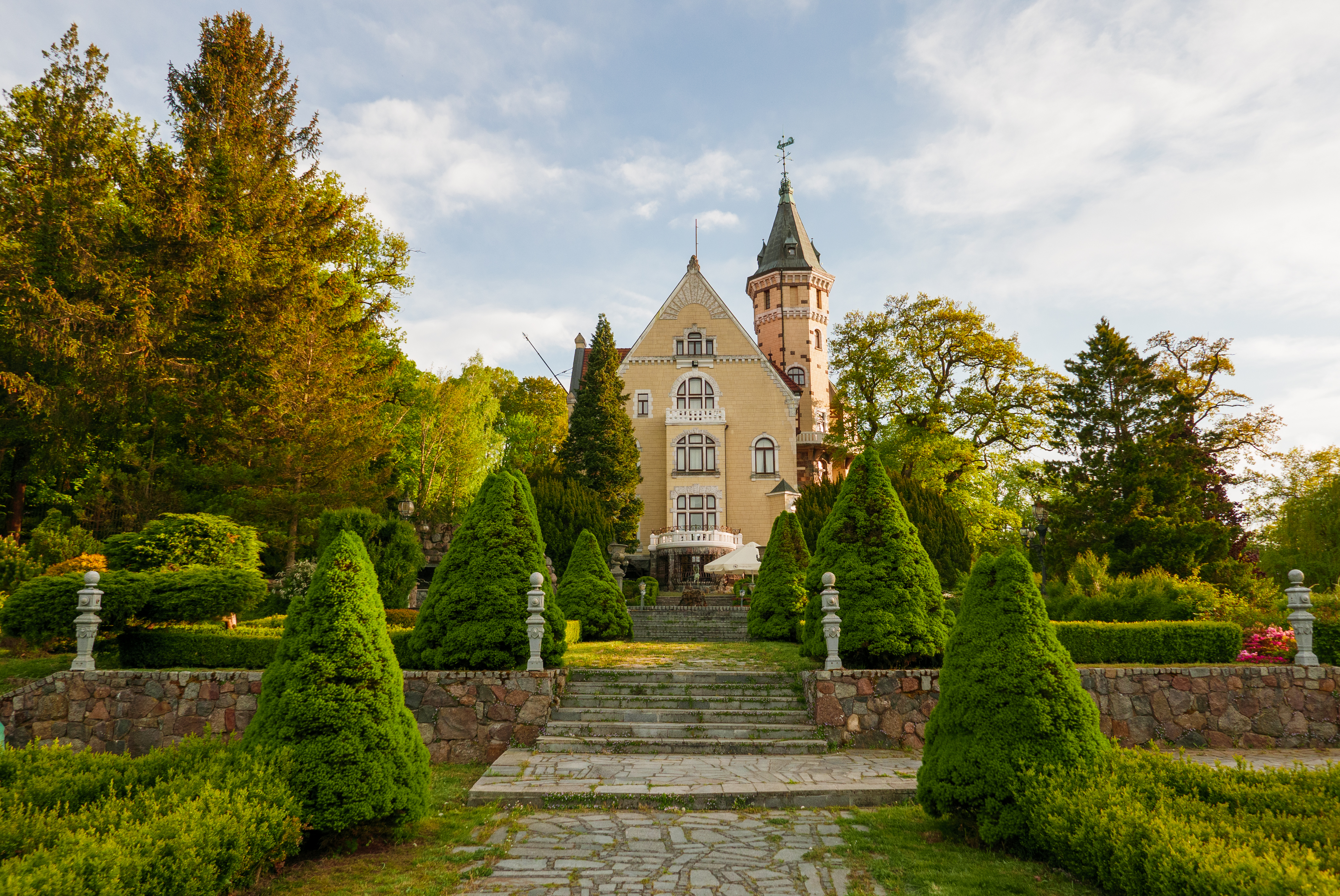 Der Bernsteinpalast ist zweifelsohne eine touristische Perle unserer Region. Vom Familiengeschlecht von Kamecke erbaut, sollte er an eine Wehrburg erinnern. Das zur Jahrhundertwende des 19. und 20. Jhs. entstandene Bauwerk verbindet die außergewöhnlichen Stilmerkmale der Romantik mit denen der Neorenaissance. In der Umgebung des Bernsteinpalastes entstand 1921 – bzw. laut anderer Quellen 1935 – der Weiße Palast, ein Hochzeitsgeschenk für den Sohn. Den Bernsteinpalast umgibt ein besonderer, historischer Park mit einem Teich. Es fehlte nicht viel und diesen besonderen Ort hätte das gleiche, traurige Schicksal ereilt wie viele andere Objekte seiner Art: Er wäre zu einer Ruine verfallen. Nach dem Krieg ging der Palast in Staatsbesitz über. Anfangs befand sich hier ein Volkseigenes Gut, später ein Erholungsheim sowie ein Internat. Mit dem Zerfall der Volksrepublik Polen war das Anwesen beinahe eine komplette Ruine. Anfang der 1990er Jahre ging das Objekt in privaten Besitz über und wurde mit einem riesigen Arbeitsaufwand sorgfältig restauriert. Heutzutage ist der Palast ein schönes Hotel, das mit seinen Innenräumen die Augen von Gästen aus aller Welt erfreut. Du musst ihn unbedingt sehen!
