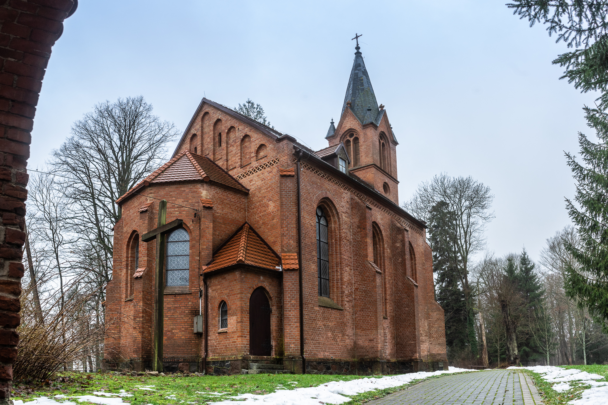 Die im neogotischen Stil errichtete Kirche Mariä Geburt stammt aus dem 19. Jh. und wurde 1945 geweiht. Es ist ein großes Gotteshaus aus rotem Ziegelstein mit einem Turm, den ein pyramidenförmiges Dach abschließt. Eines der wertvollsten historischen Elemente im Inneren ist der Messing-Kronleuchter aus dem 17. Jh. Den Bau umgibt eine nicht große Grünanlage mit einem Denkmal, das der im 1. Weltkrieg gefallenen Einwohner von Świeszyno gedenkt.